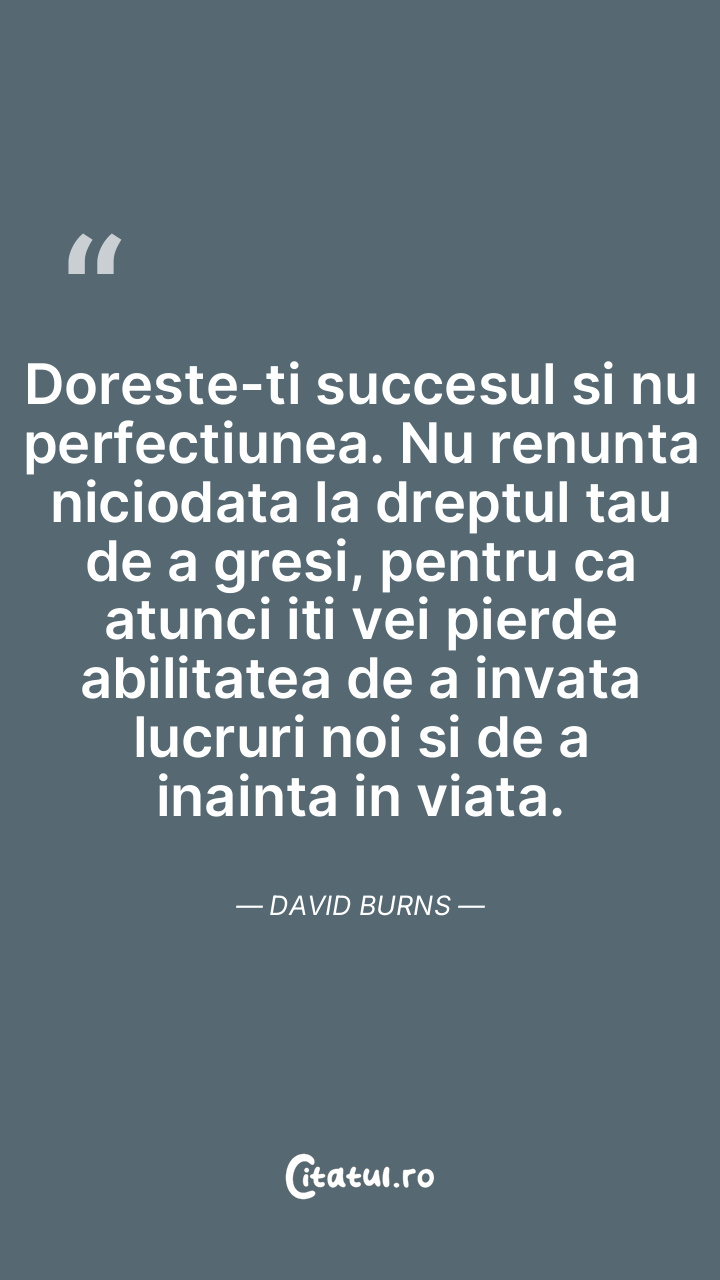 Doreste-ti succesul si nu perfectiunea. Nu re ... Citește tot citatul >