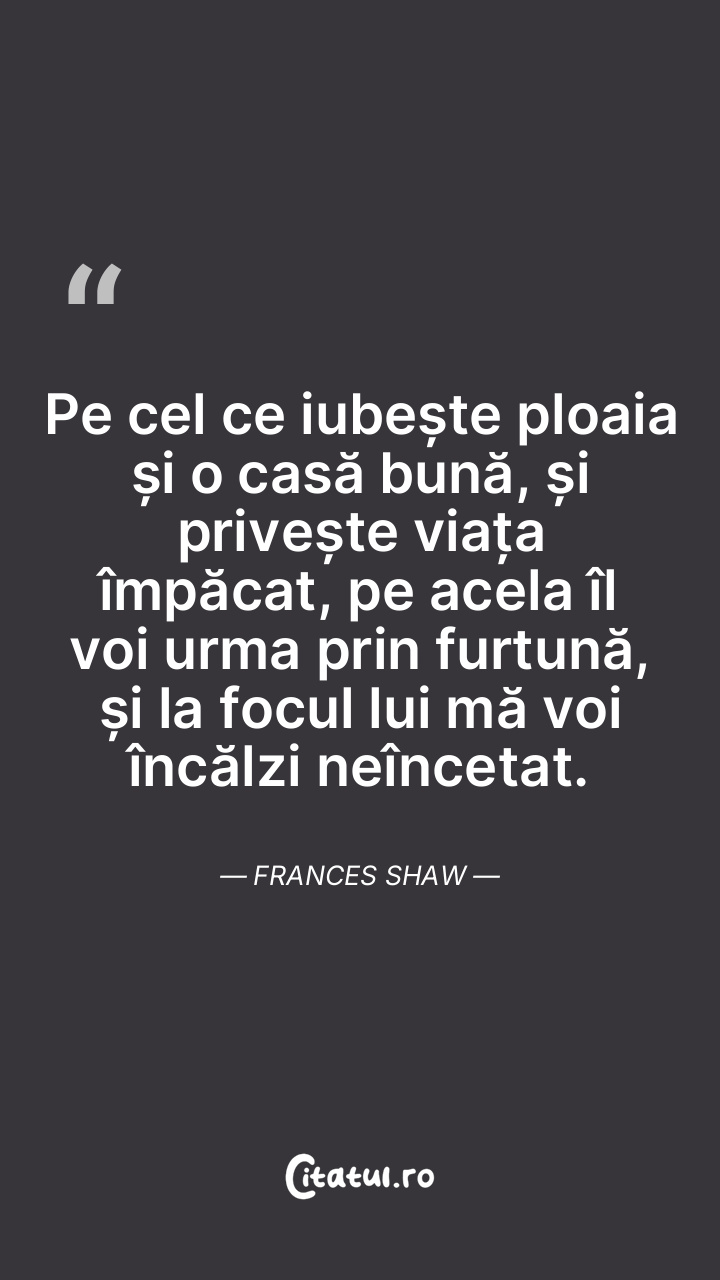 Cine apreciază ploaia, căminul și are o viziu ... Citește tot citatul >