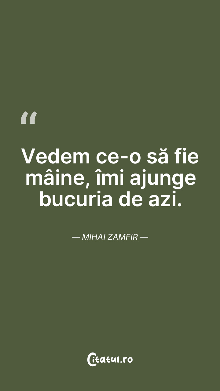 Vedem ce-o să fie mâine, îmi ajunge bucuria d ... Citește tot citatul >