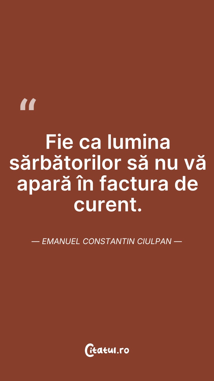 Fie ca lumina sărbătorilor să nu vă apară în factura de curent. Emanuel Constantin Ciulpan