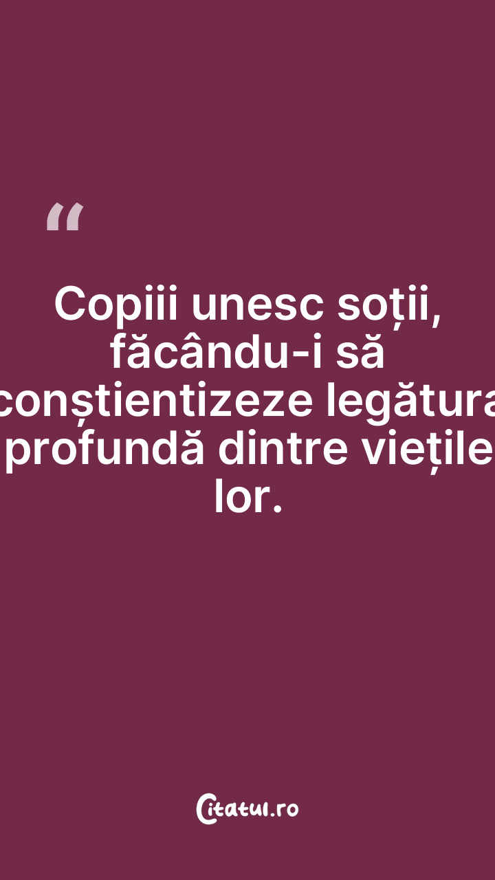 Copiii unesc soții, făcându-i să conștientizeze legătura profundă dintre viețile lor.