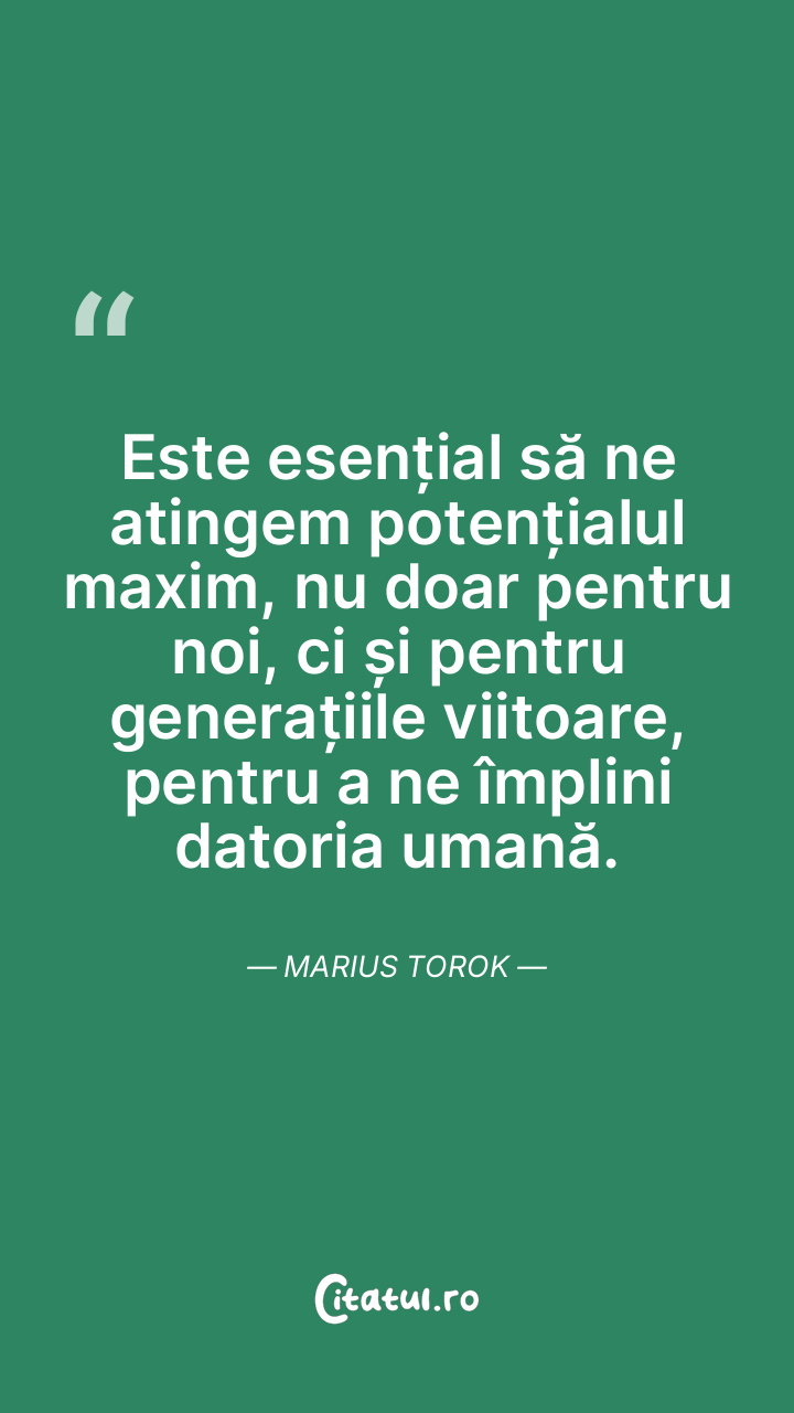 Este esențial să ne atingem potențialul maxim, nu doar pentru noi, ci și pentru generațiile viitoare, pentru a ne împlini datoria umană. Marius Torok