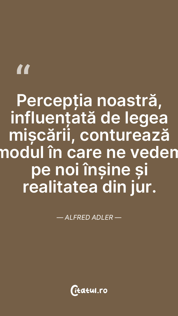 Percepția noastră, influențată de legea mișcării, conturează modul în care ne vedem pe noi înșine și realitatea din jur. Alfred Adler