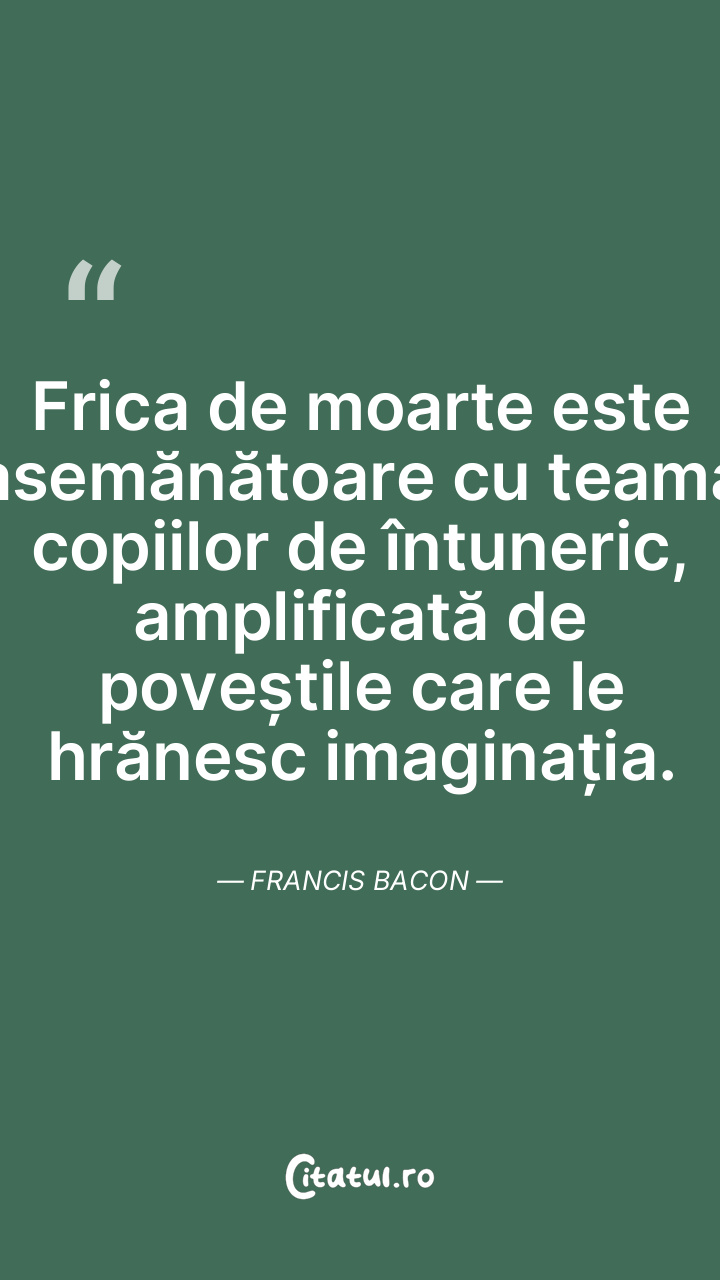 Frica de moarte este asemănătoare cu teama copiilor de întuneric, amplificată de poveștile care le hrănesc imaginația. Francis Bacon