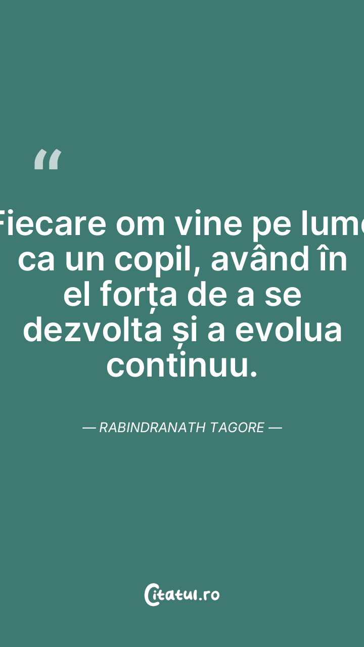 Fiecare om vine pe lume ca un copil, având în el forța de a se dezvolta și a evolua continuu. Rabindranath Tagore