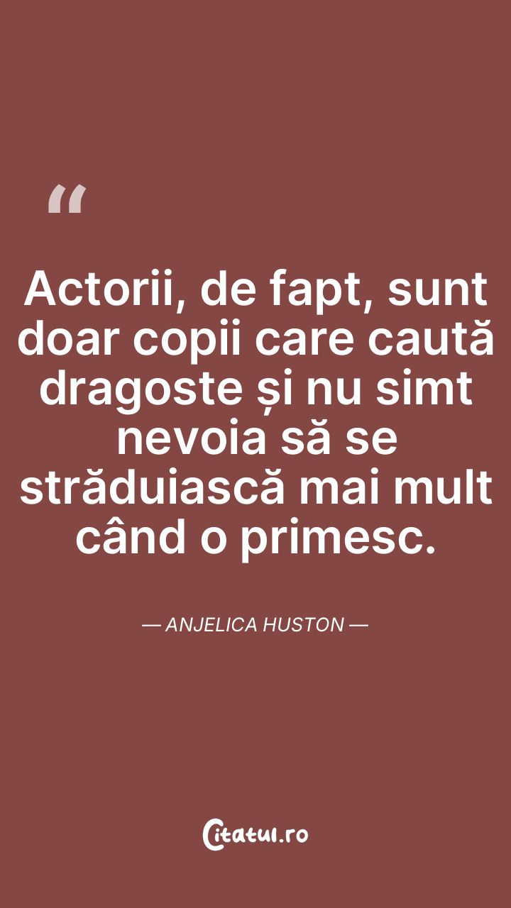 Actorii, de fapt, sunt doar copii care caută dragoste și nu simt nevoia să se străduiască mai mult când o primesc. Anjelica Huston