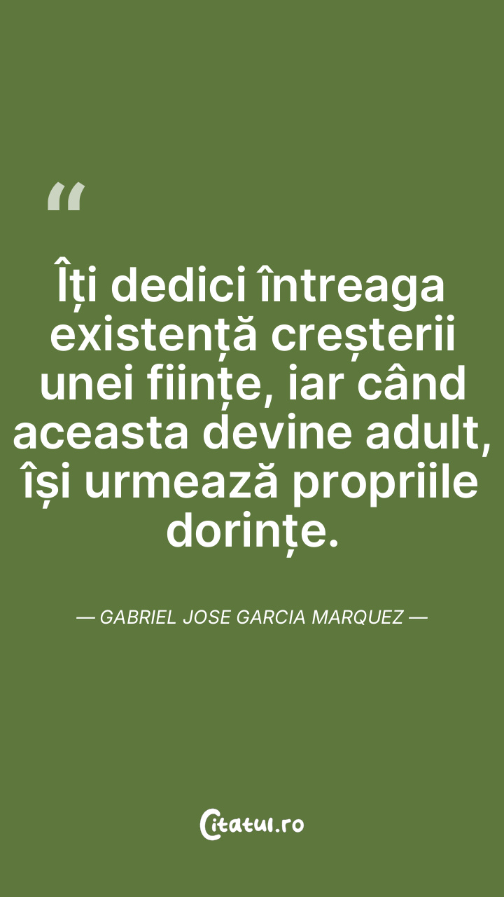 Îți dedici întreaga existență creșterii unei ființe, iar când aceasta devine adult, își urmează propriile dorințe. Gabriel Jose Garcia Marquez