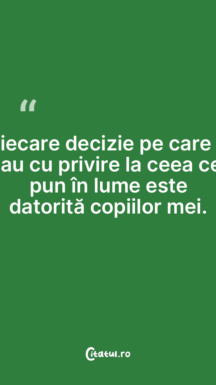 Fiecare decizie pe care o iau cu privire la ceea ce pun în lume este datorită copiilor mei.