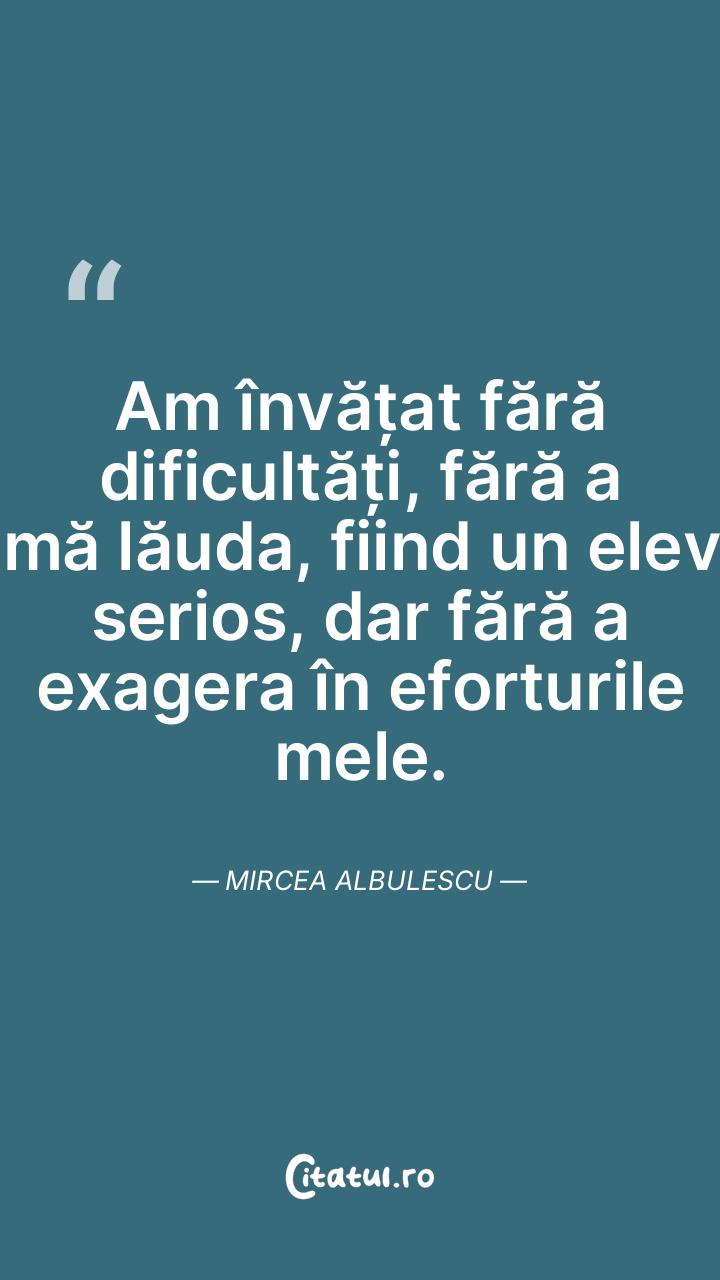 Am învățat fără dificultăți, fără a mă lăuda, fiind un elev serios, dar fără a exagera în eforturile mele. Mircea Albulescu