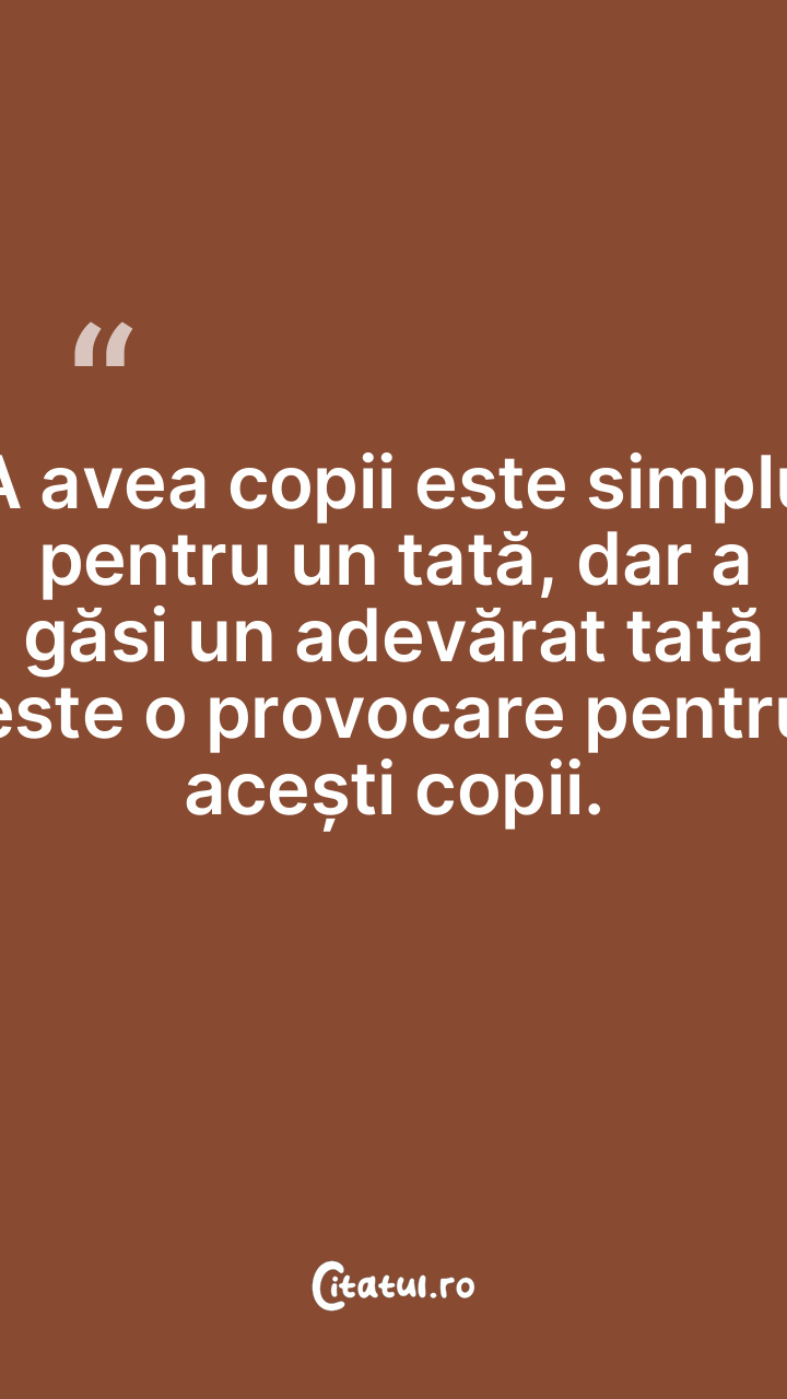 A avea copii este simplu pentru un tată, dar a găsi un adevărat tată este o provocare pentru acești copii.