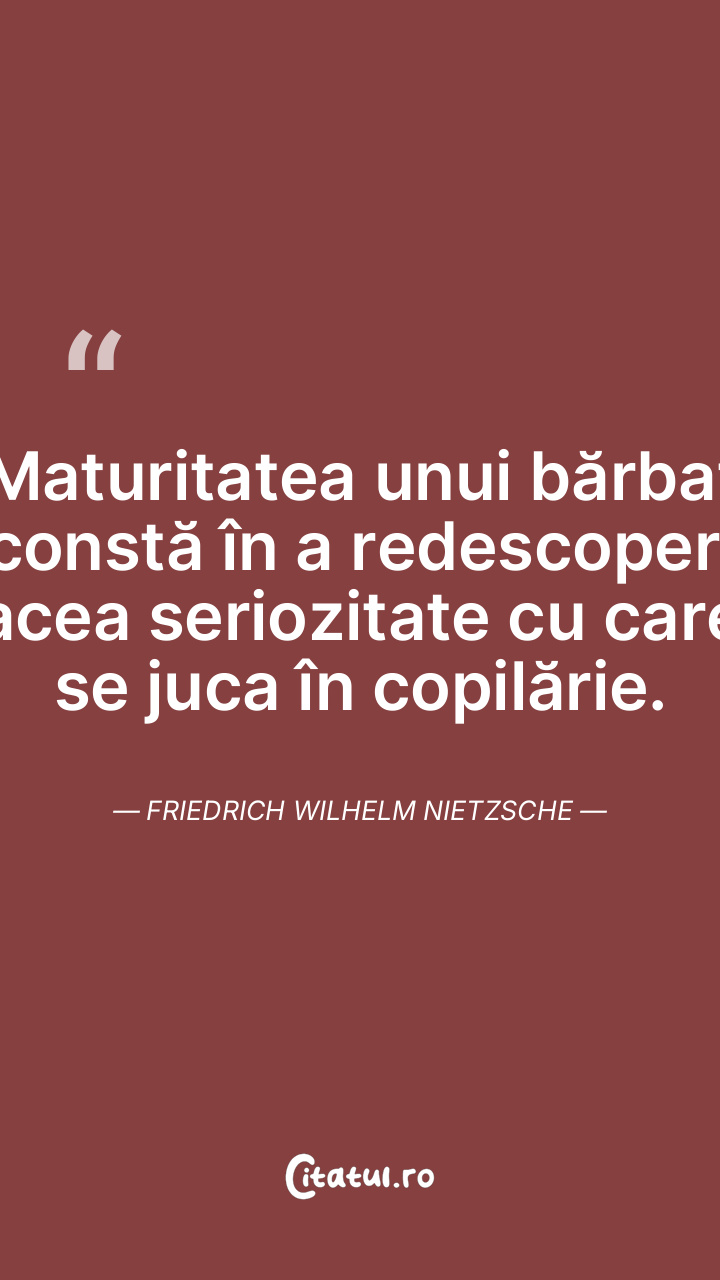 Maturitatea unui bărbat constă în a redescoperi acea seriozitate cu care se juca în copilărie. Friedrich Wilhelm Nietzsche