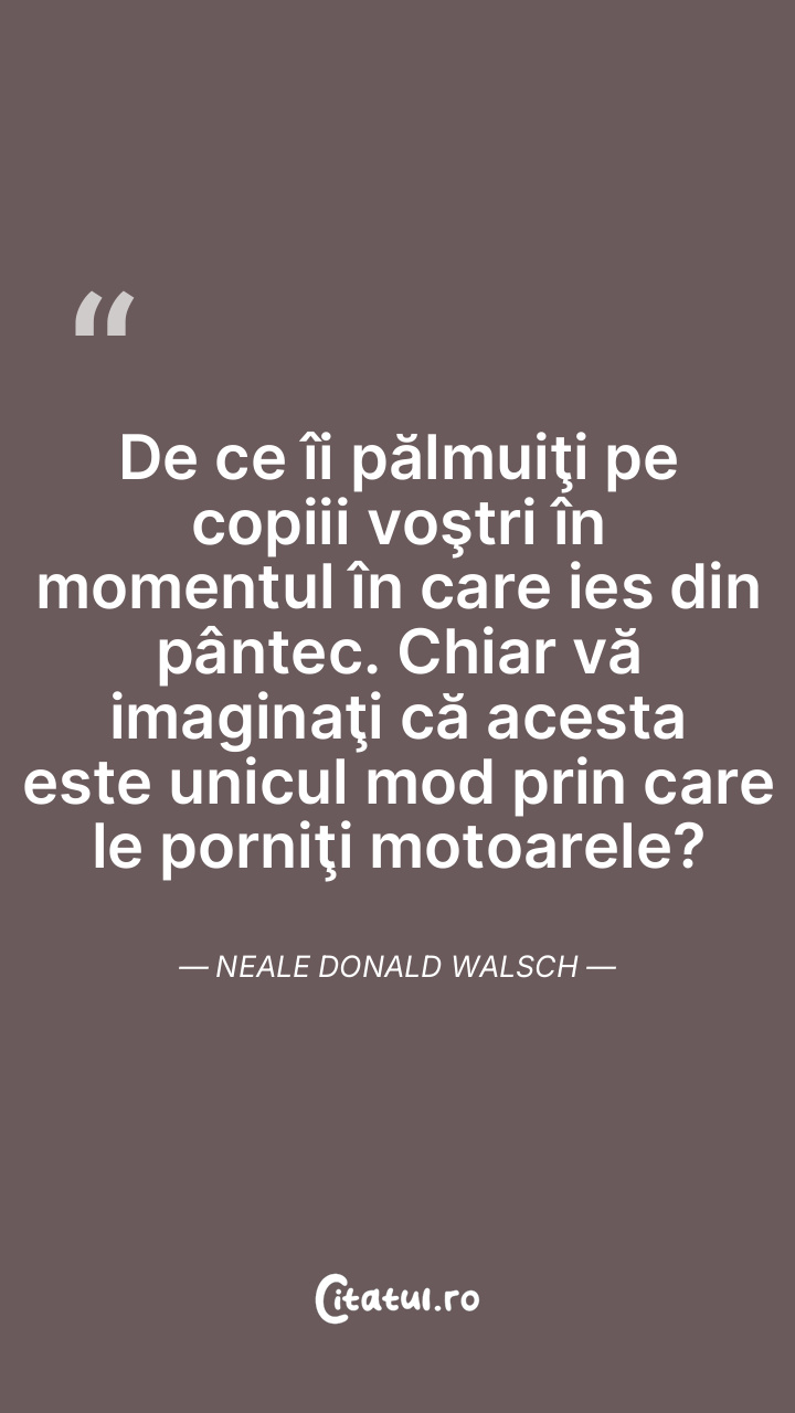De ce îi pălmuiţi pe copiii voştri în momentul în care ies din pântec. Chiar vă imaginaţi că acesta este unicul mod prin care le porniţi motoarele? Neale Donald Walsch