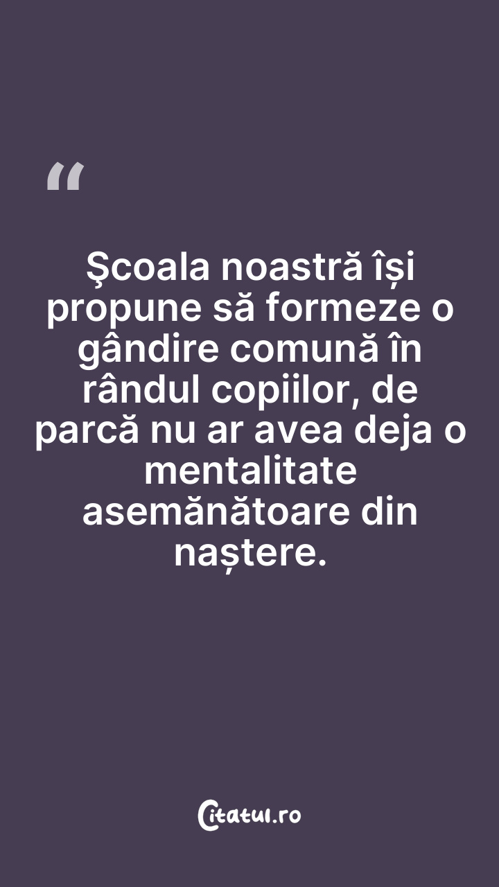Şcoala noastră își propune să formeze o gândire comună în rândul copiilor, de parcă nu ar avea deja o mentalitate asemănătoare din naștere.