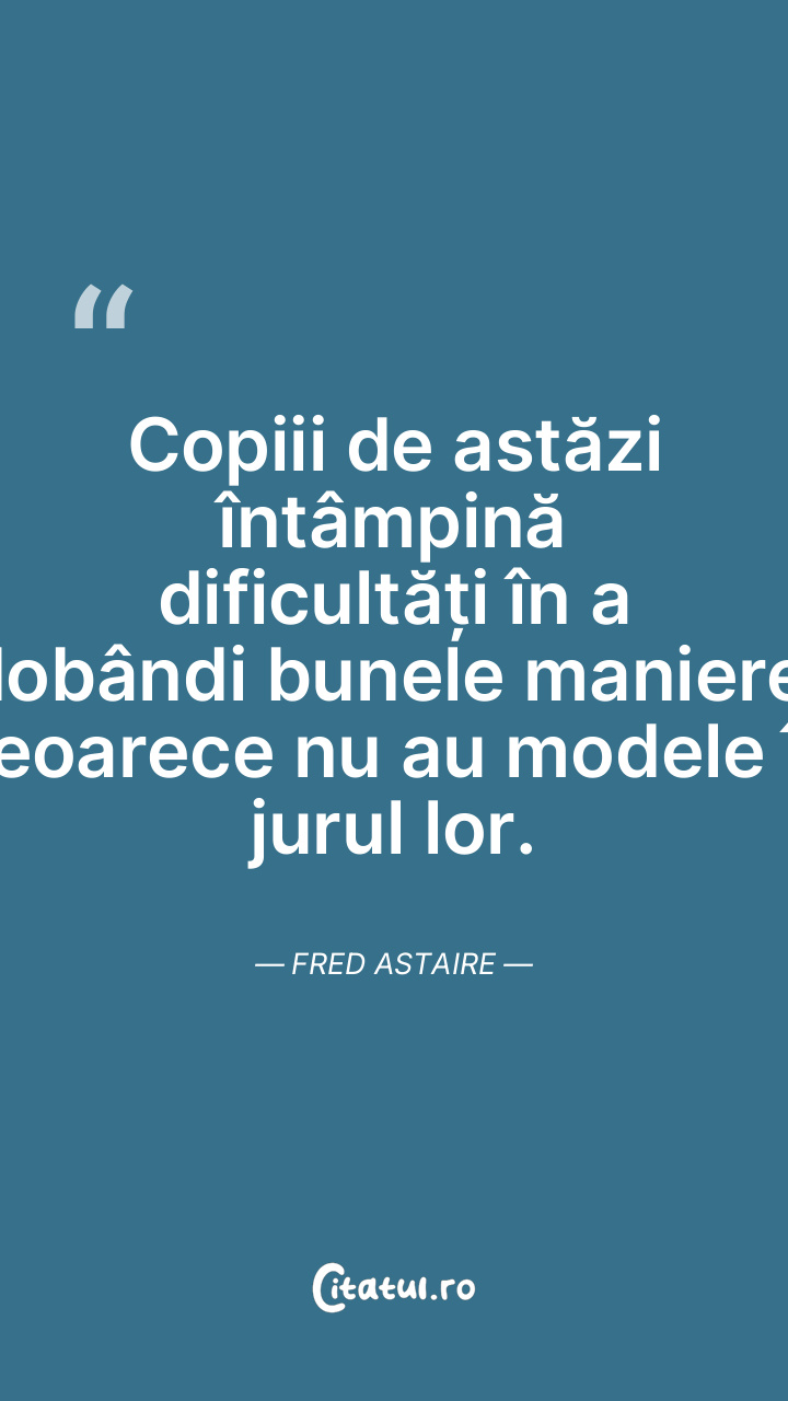 Copiii de astăzi întâmpină dificultăți în a dobândi bunele maniere, deoarece nu au modele în jurul lor. Fred Astaire