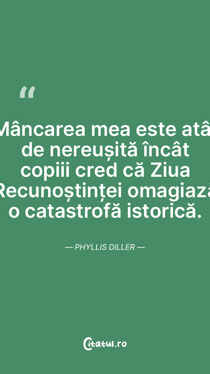 Mâncarea mea este atât de nereușită încât copiii cred că Ziua Recunoștinței omagiază o catastrofă istorică. Phyllis Diller