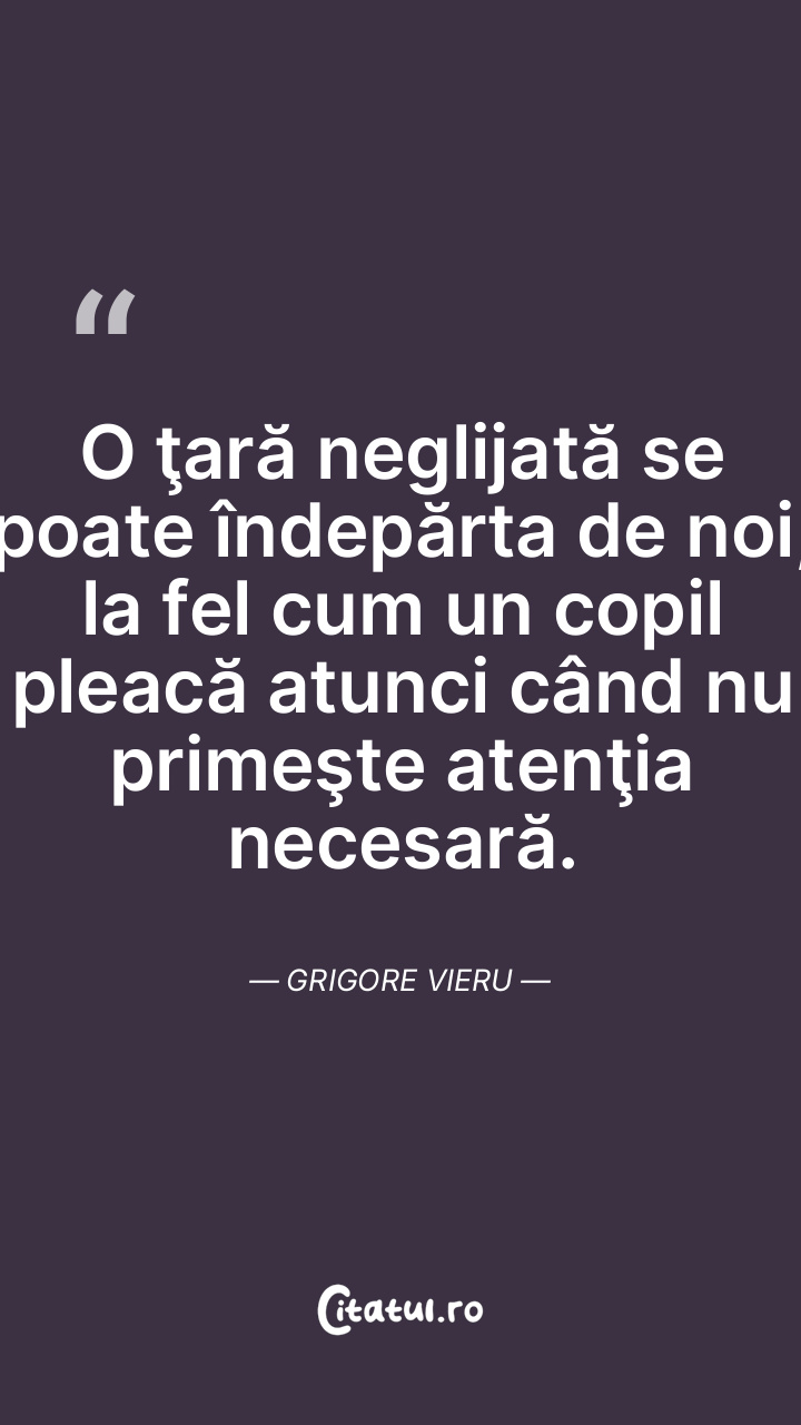 O ţară neglijată se poate îndepărta de noi, la fel cum un copil pleacă atunci când nu primeşte atenţia necesară. Grigore Vieru