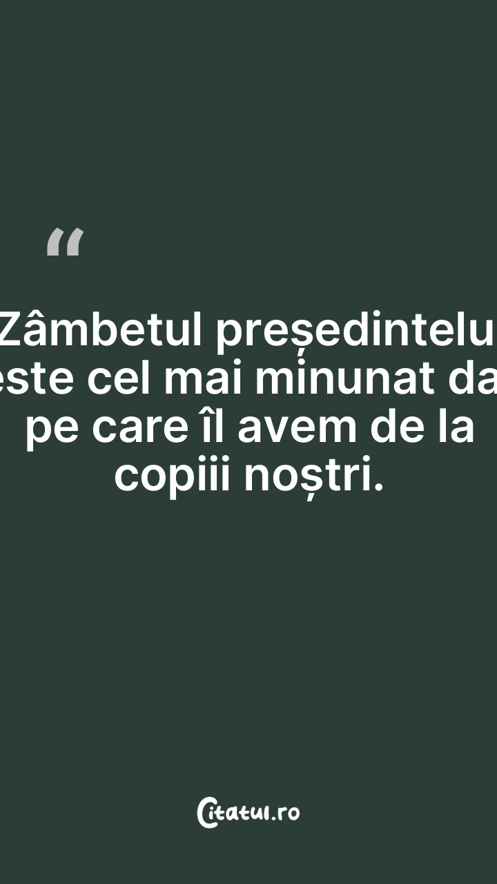Zâmbetul președintelui este cel mai minunat dar pe care îl avem de la copiii noștri.