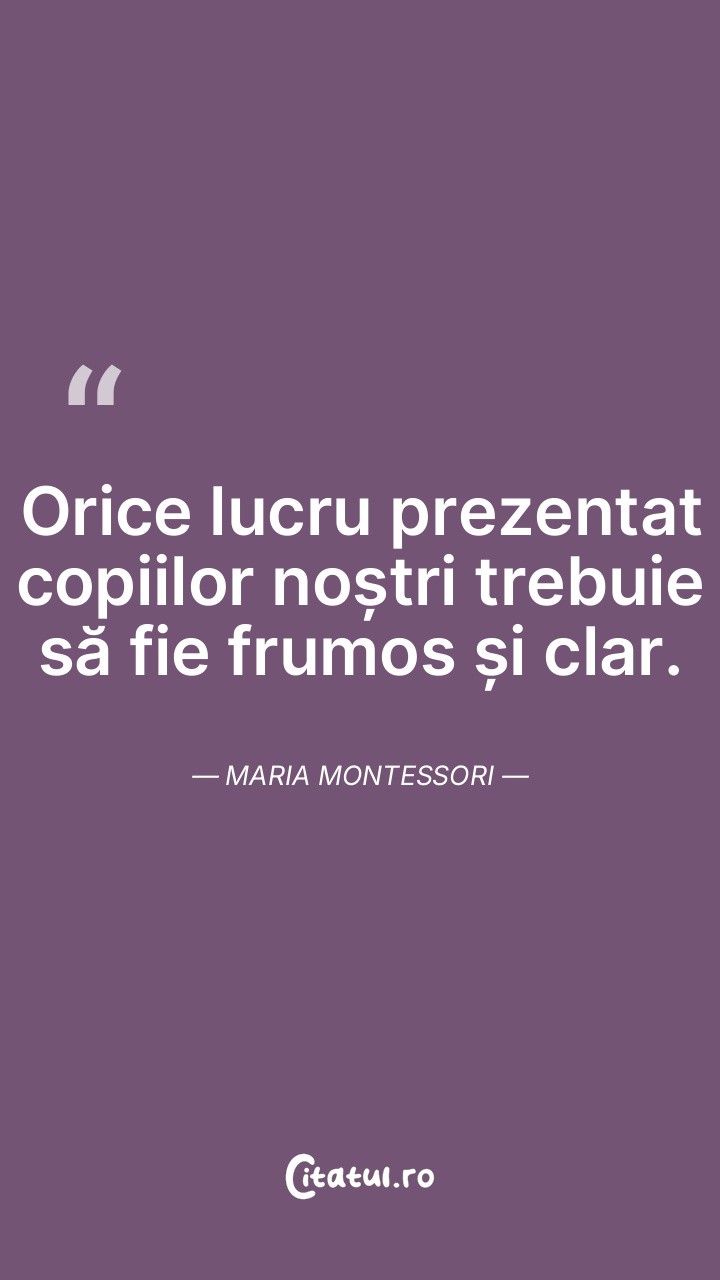 Orice lucru prezentat copiilor noștri trebuie să fie frumos și clar. Maria Montessori