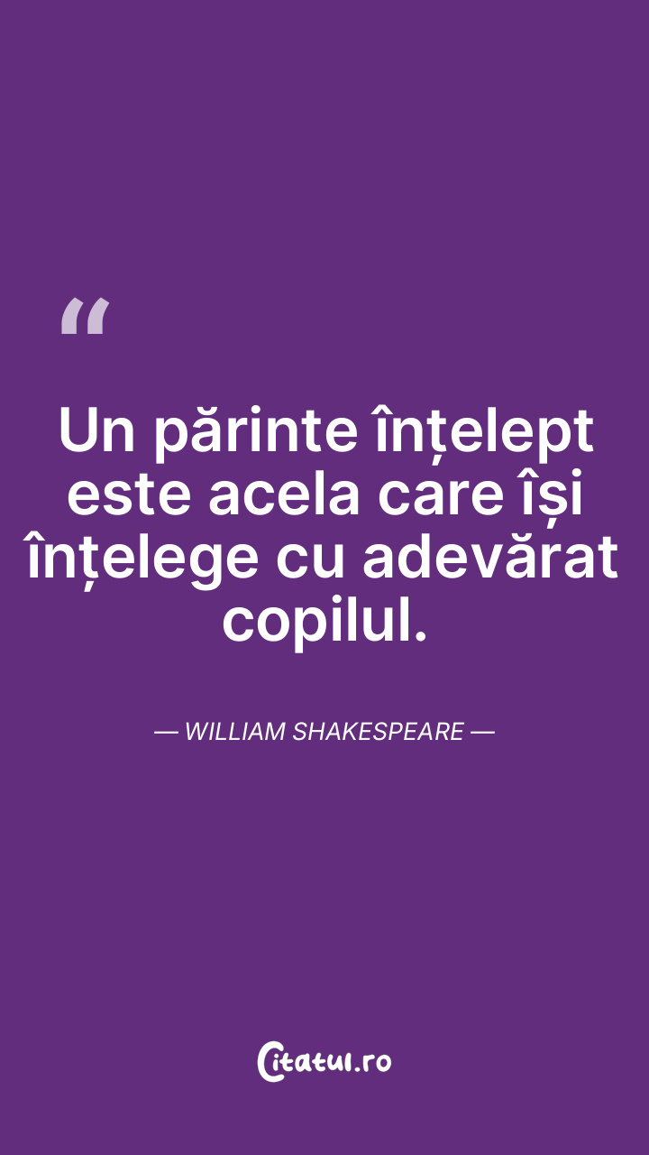 Un părinte înțelept este acela care își înțelege cu adevărat copilul. William Shakespeare
