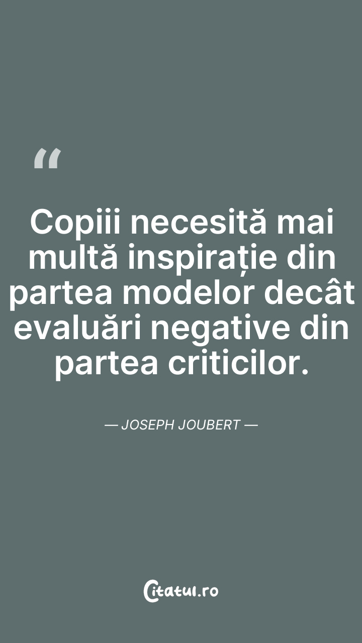 Copiii necesită mai multă inspirație din partea modelor decât evaluări negative din partea criticilor. Joseph Joubert