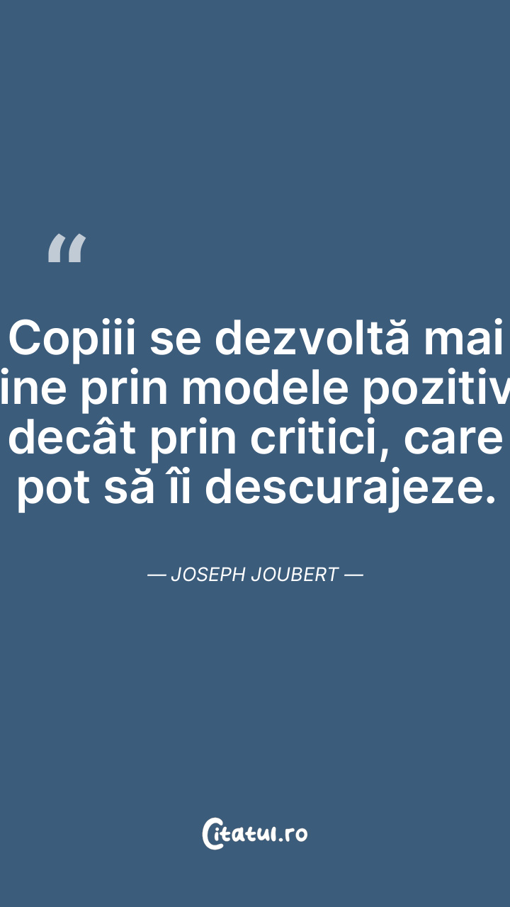 Copiii se dezvoltă mai bine prin modele pozitive decât prin critici, care pot să îi descurajeze. Joseph Joubert