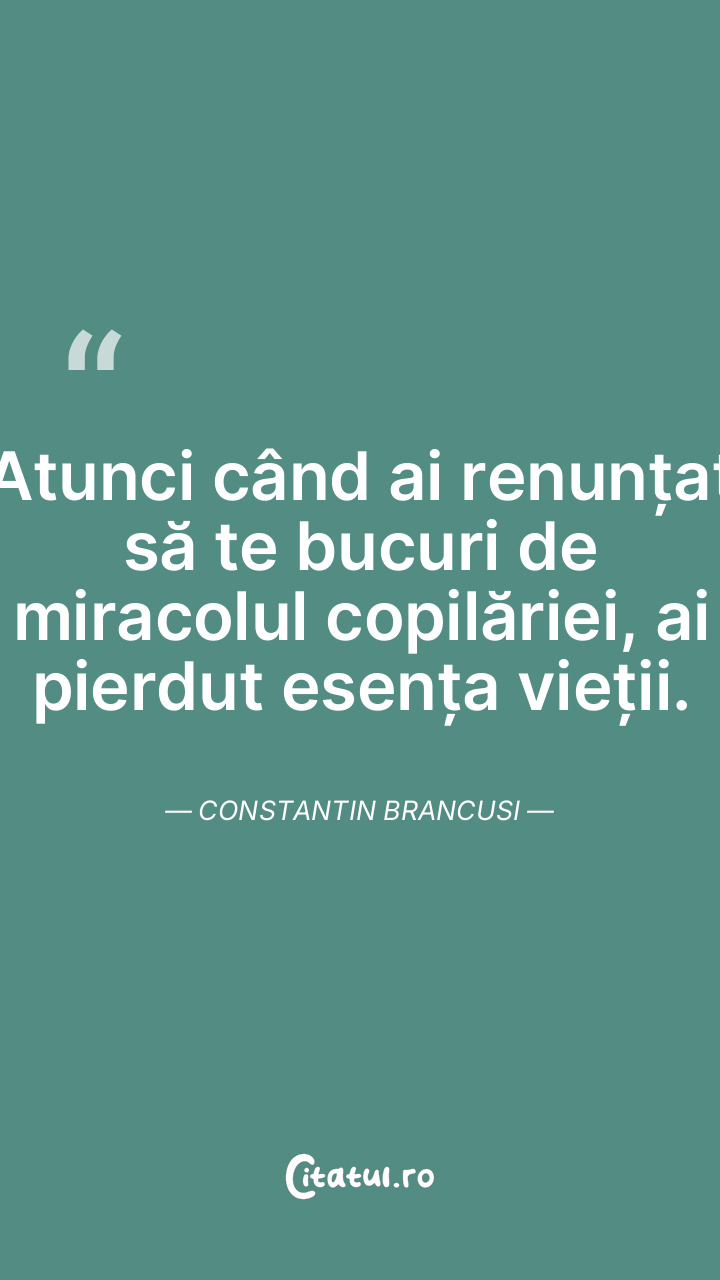Atunci când ai renunțat să te bucuri de miracolul copilăriei, ai pierdut esența vieții. Constantin Brancusi
