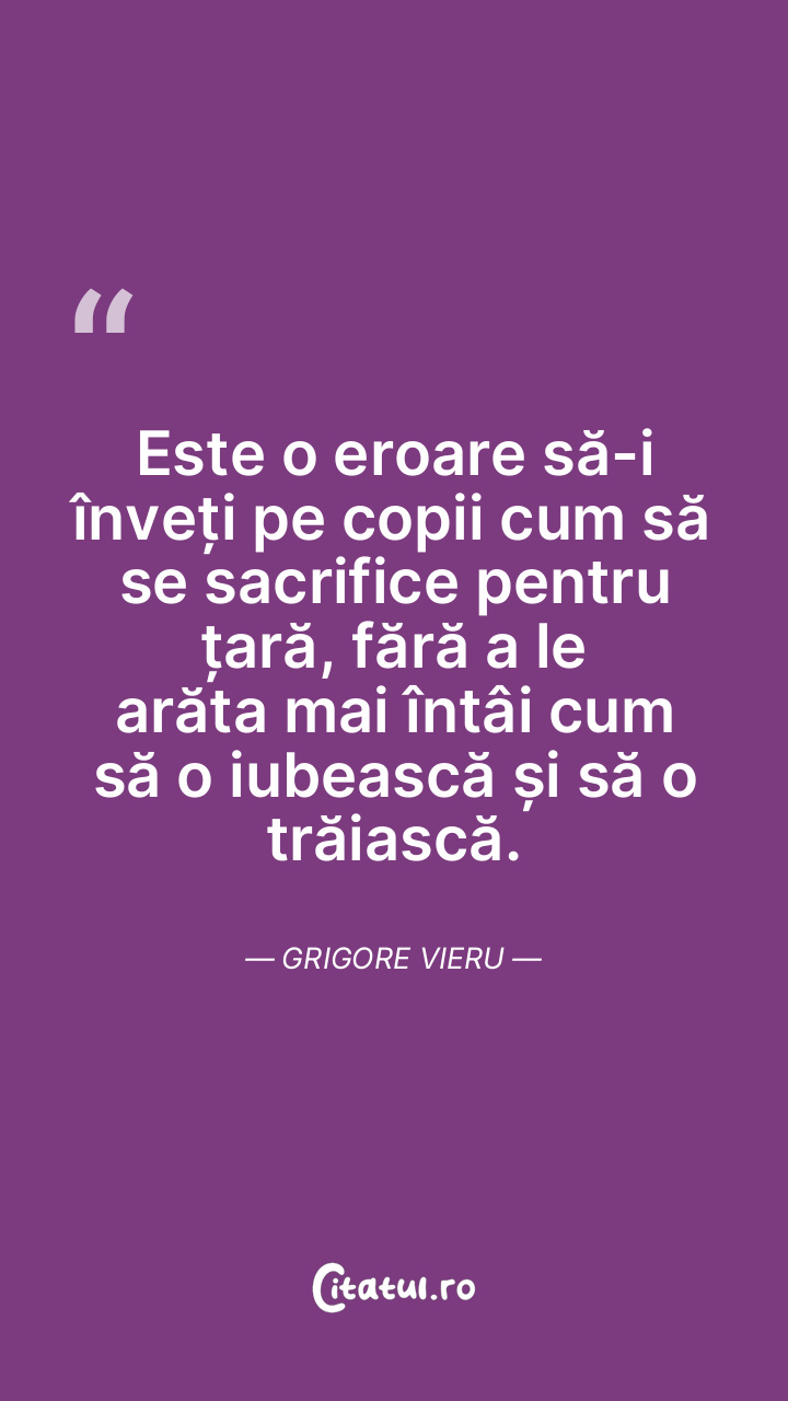 Este o eroare să-i înveți pe copii cum să se sacrifice pentru țară, fără a le arăta mai întâi cum să o iubească și să o trăiască. Grigore Vieru