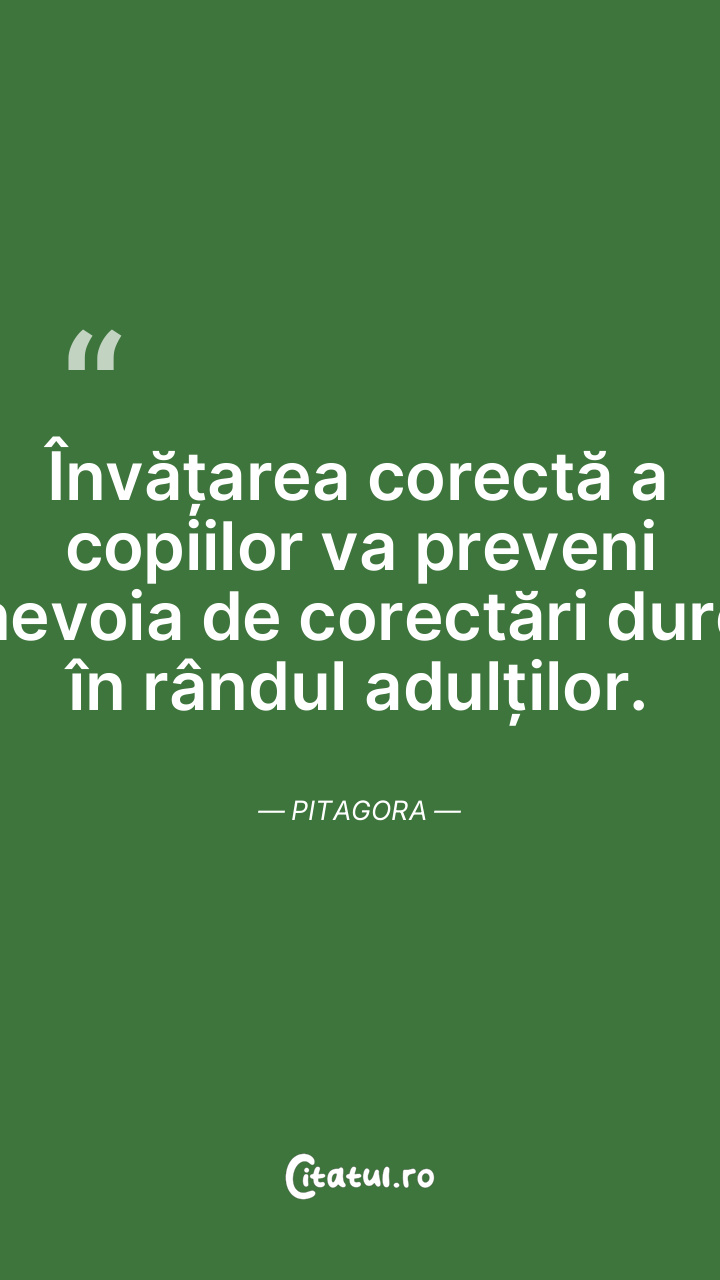 Învățarea corectă a copiilor va preveni nevoia de corectări dure în rândul adulților. Pitagora