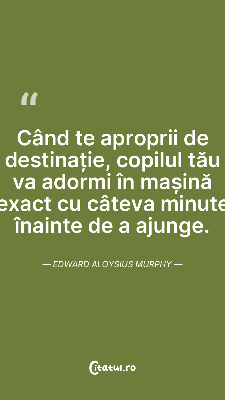 Când te aproprii de destinație, copilul tău va adormi în mașină exact cu câteva minute înainte de a ajunge. Edward Aloysius Murphy