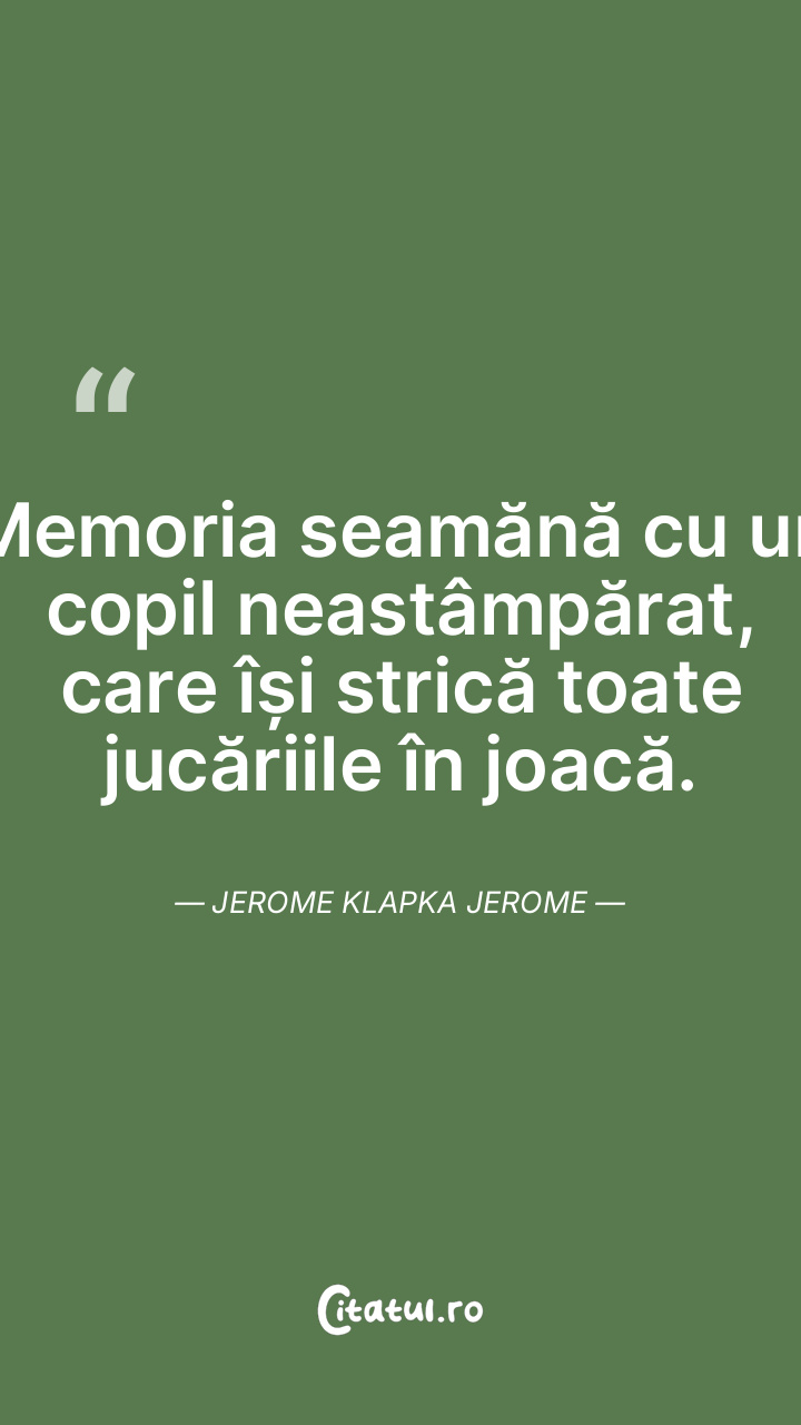 Memoria seamănă cu un copil neastâmpărat, care își strică toate jucăriile în joacă. Jerome Klapka Jerome