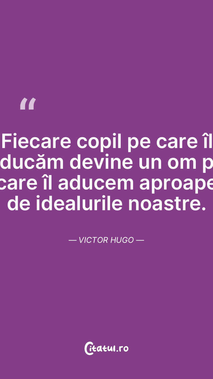 Fiecare copil pe care îl educăm devine un om pe care îl aducem aproape de idealurile noastre. Victor Hugo