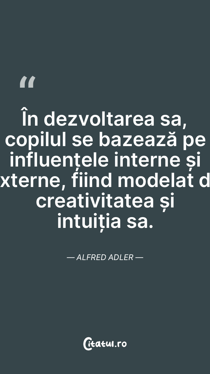 În dezvoltarea sa, copilul se bazează pe influențele interne și externe, fiind modelat de creativitatea și intuiția sa. Alfred Adler