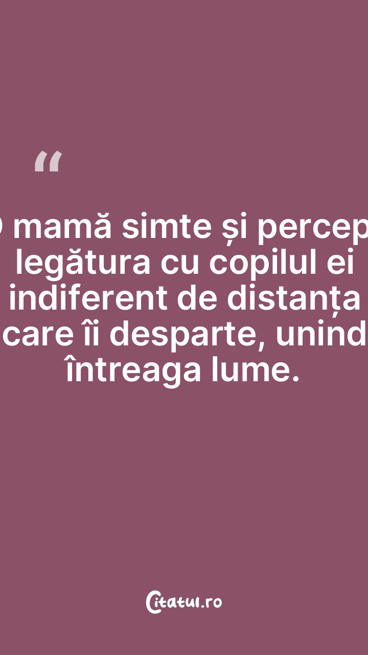 O mamă simte și percepe legătura cu copilul ei indiferent de distanța care îi desparte, unind întreaga lume.