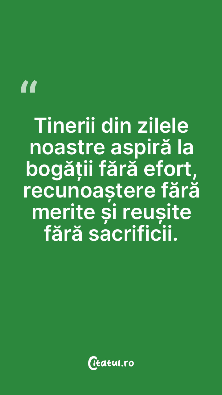 Tinerii din zilele noastre aspiră la bogății fără efort, recunoaștere fără merite și reușite fără sacrificii.