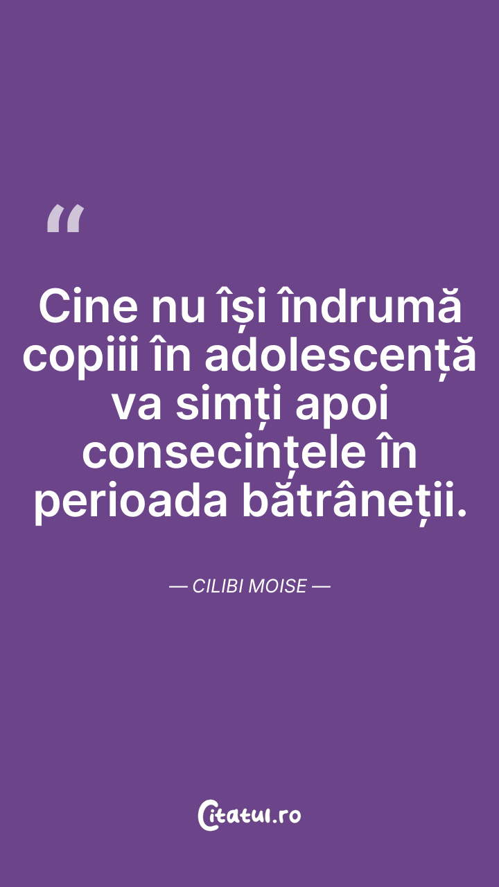 Cine nu își îndrumă copiii în adolescență va simți apoi consecințele în perioada bătrâneții. Cilibi Moise