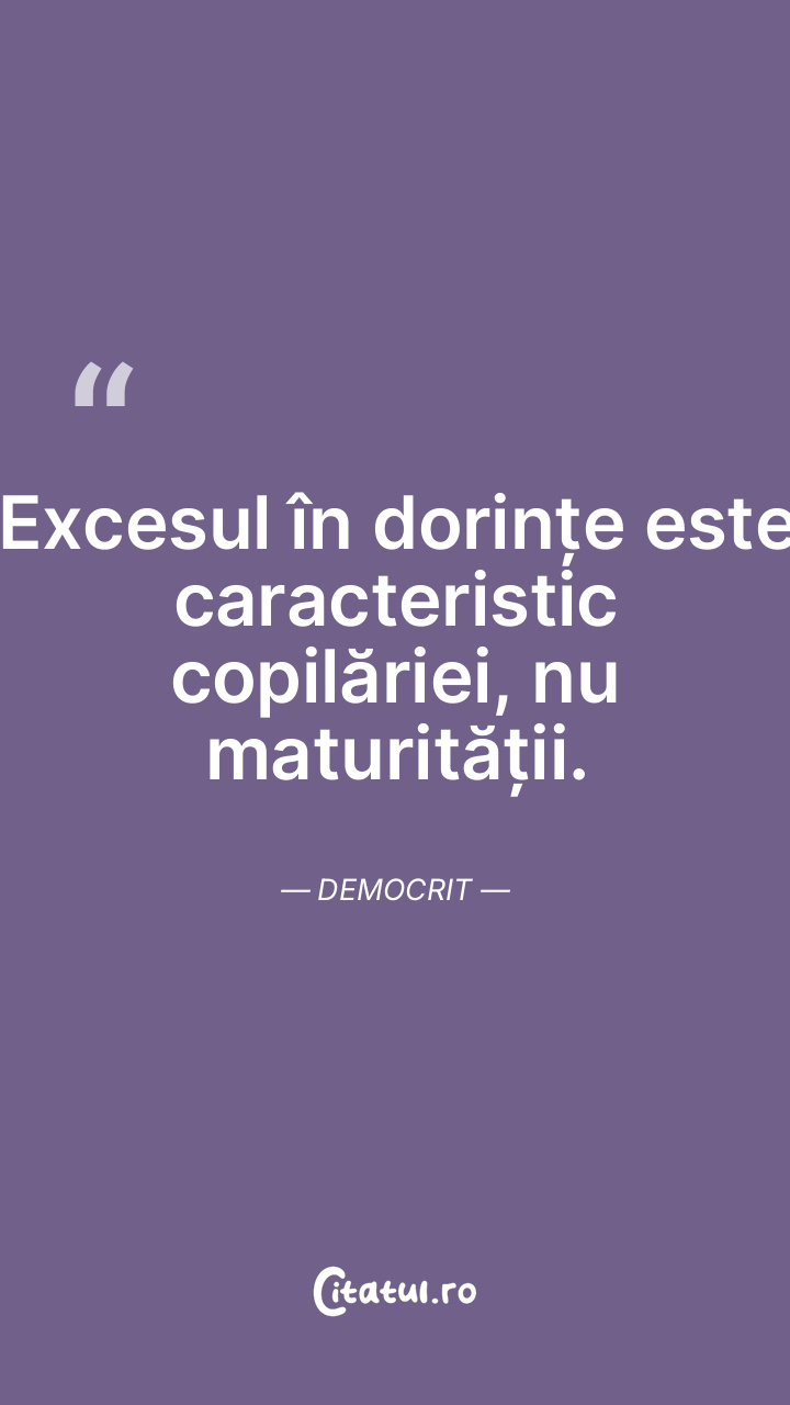 Excesul în dorințe este caracteristic copilăriei, nu maturității. Democrit