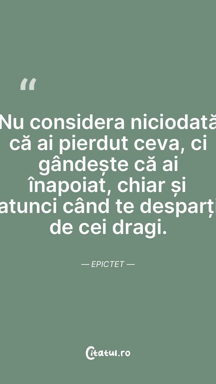 Nu considera niciodată că ai pierdut ceva, ci gândește că ai înapoiat, chiar și atunci când te desparți de cei dragi. Epictet