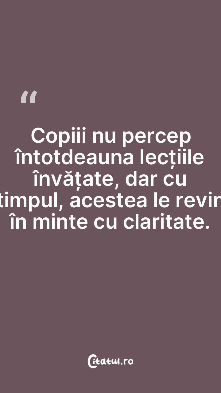 Copiii nu percep întotdeauna lecțiile învățate, dar cu timpul, acestea le revin în minte cu claritate.