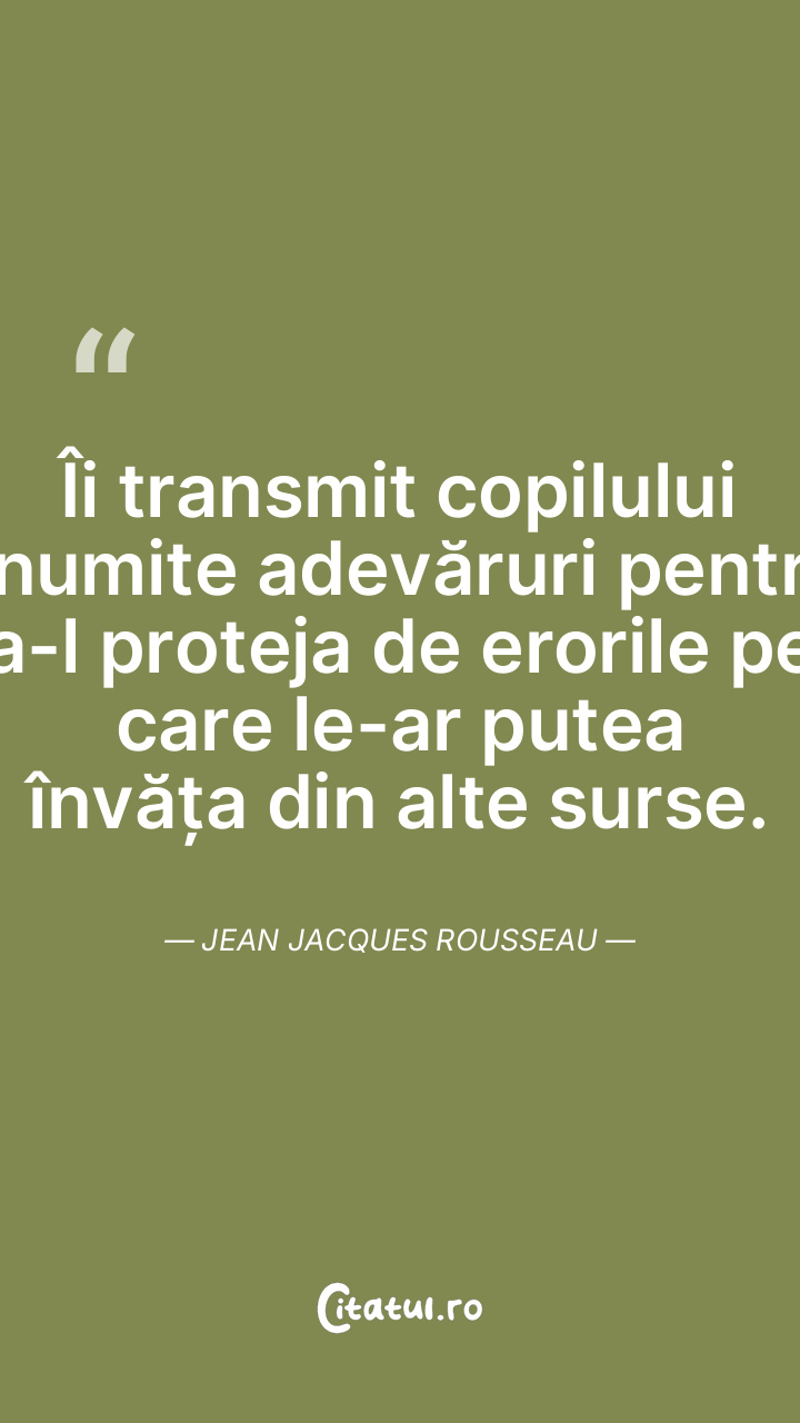Îi transmit copilului anumite adevăruri pentru a-l proteja de erorile pe care le-ar putea învăța din alte surse. Jean Jacques Rousseau