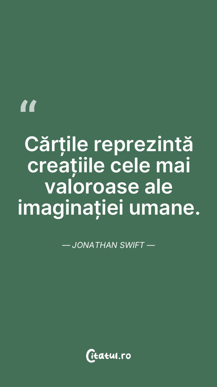 Cărțile reprezintă creațiile cele mai valoroase ale imaginației umane. Jonathan Swift