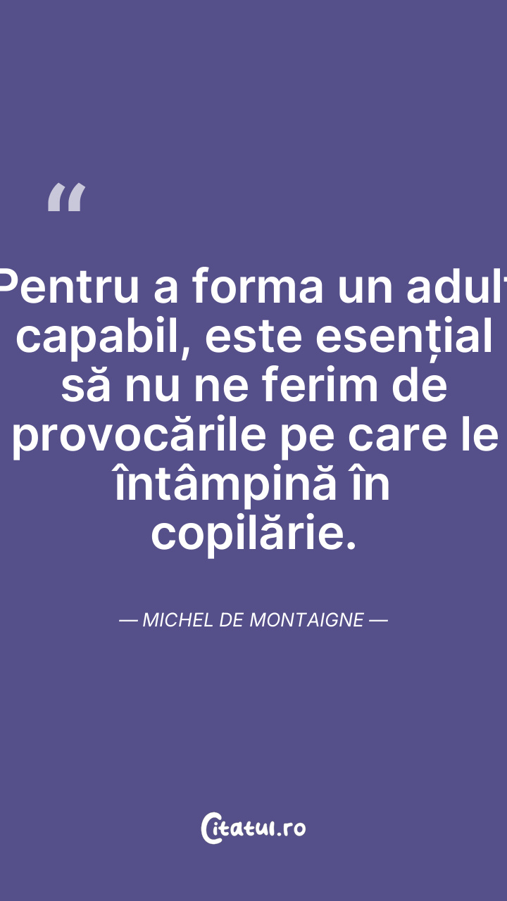 Pentru a forma un adult capabil, este esențial să nu ne ferim de provocările pe care le întâmpină în copilărie. Michel de Montaigne