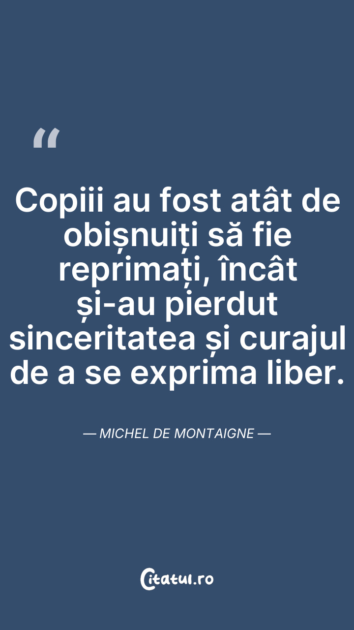 Copiii au fost atât de obișnuiți să fie reprimați, încât și-au pierdut sinceritatea și curajul de a se exprima liber. Michel de Montaigne
