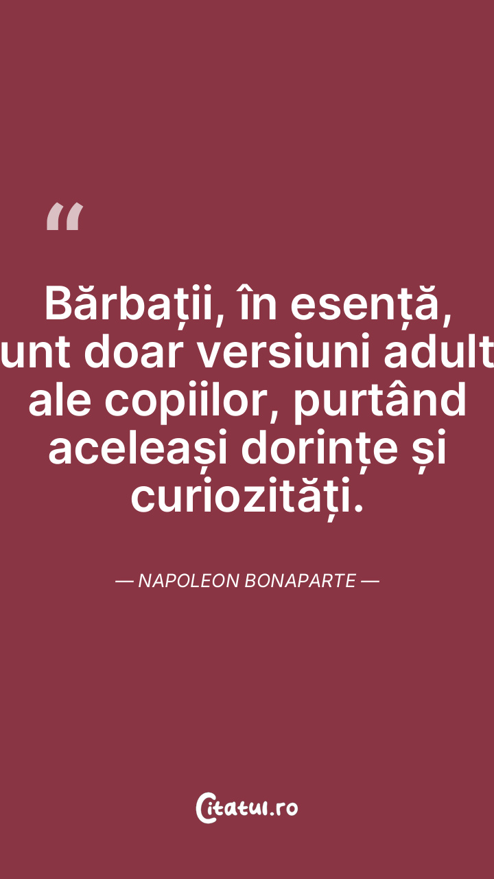 Bărbații, în esență, sunt doar versiuni adulte ale copiilor, purtând aceleași dorințe și curiozități. Napoleon Bonaparte