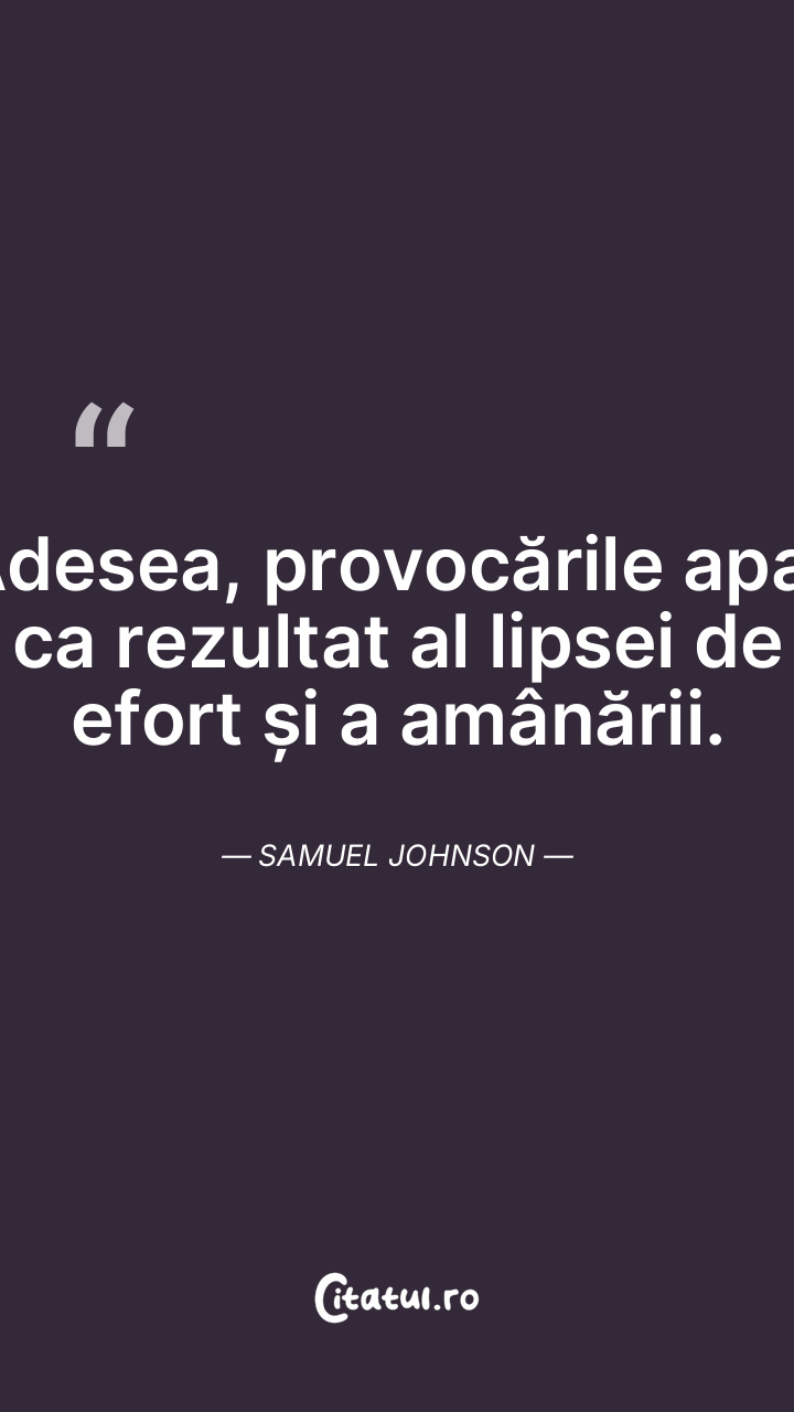 Adesea, provocările apar ca rezultat al lipsei de efort și a amânării. Samuel Johnson