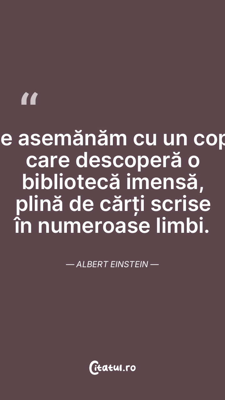 Ne asemănăm cu un copil care descoperă o bibliotecă imensă, plină de cărți scrise în numeroase limbi. Albert Einstein