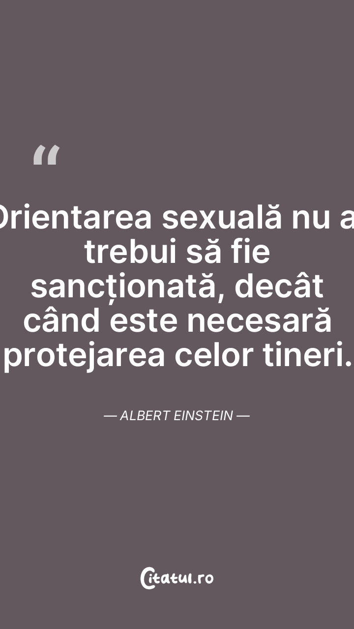 Orientarea sexuală nu ar trebui să fie sancționată, decât când este necesară protejarea celor tineri. Albert Einstein