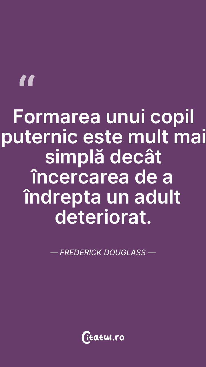 Formarea unui copil puternic este mult mai simplă decât încercarea de a îndrepta un adult deteriorat. Frederick Douglass