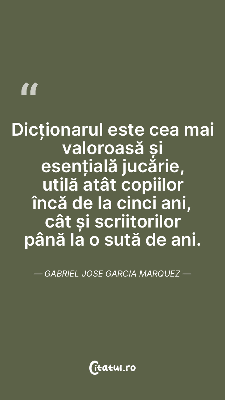 Dicționarul este cea mai valoroasă și esențială jucărie, utilă atât copiilor încă de la cinci ani, cât și scriitorilor până la o sută de ani. Gabriel Jose Garcia Marquez