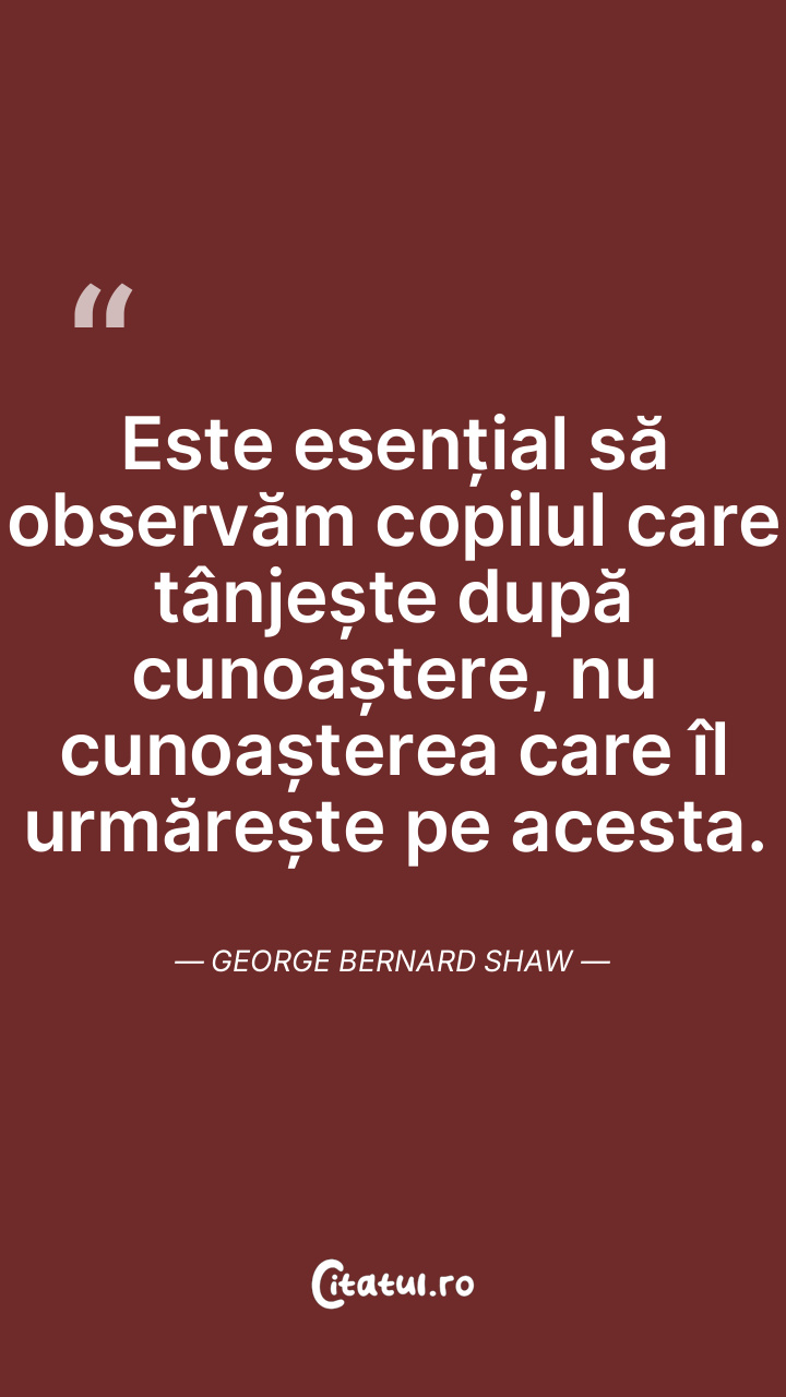 Este esențial să observăm copilul care tânjește după cunoaștere, nu cunoașterea care îl urmărește pe acesta. George Bernard Shaw