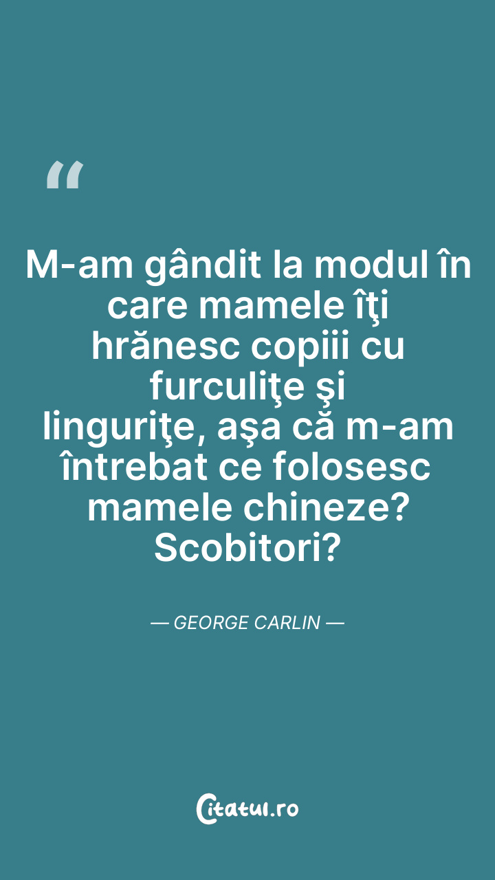 M-am gândit la modul în care mamele îţi hrănesc copiii cu furculiţe şi linguriţe, aşa că m-am întrebat ce folosesc mamele chineze? Scobitori? George Carlin